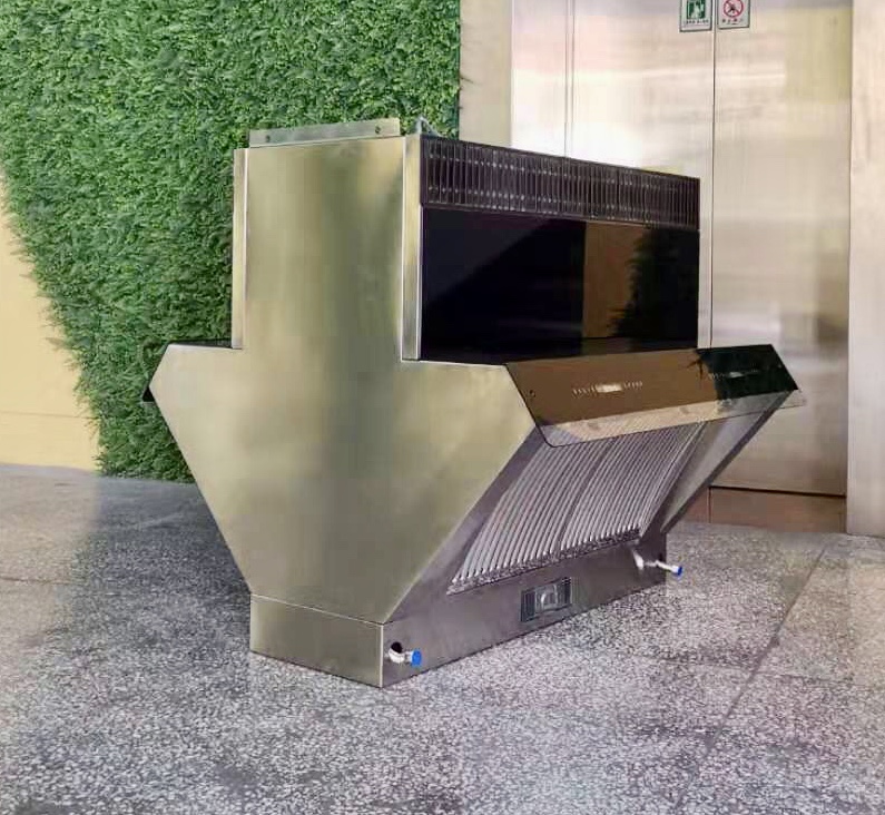 作為商業用途時,由于不需要連接煙管或煙道,適合任何環境下的餐飲廚房,商場中島等等均可安裝使用,實現商業餐飲功能;在室內吊裝時機器前后兩面,可以同時烹飪,同時進煙,在遠超國家環保要求的同時,實現了室外“0”排放,室內無污染,增加了烹飪面積,降低了餐飲設施成本;同時正面出風的形式對廚房間的空間高度沒有了要求,非常適合小吃餐車,集裝箱式美食房,戶外小型美食房等餐飲場所。