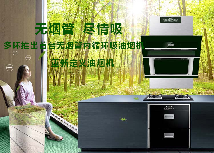 【無煙管內(nèi)循環(huán)吸油煙機】:將烹飪過程中產(chǎn)生的油脂、煙霧、有害氣體、細菌和異味進行收集和凈化處理,無需對外接管排放,實現(xiàn)“室外不排放,室內(nèi)無污染”。還可兼用于去除新裝修房子的甲醛等,使室內(nèi)空氣長久清新。