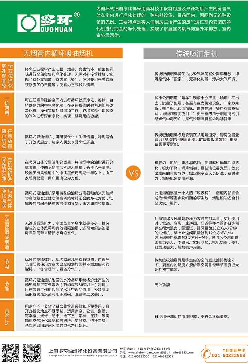 多環(huán)公司小型無煙管內(nèi)循環(huán)油煙機與傳統(tǒng)吸油煙機的比較